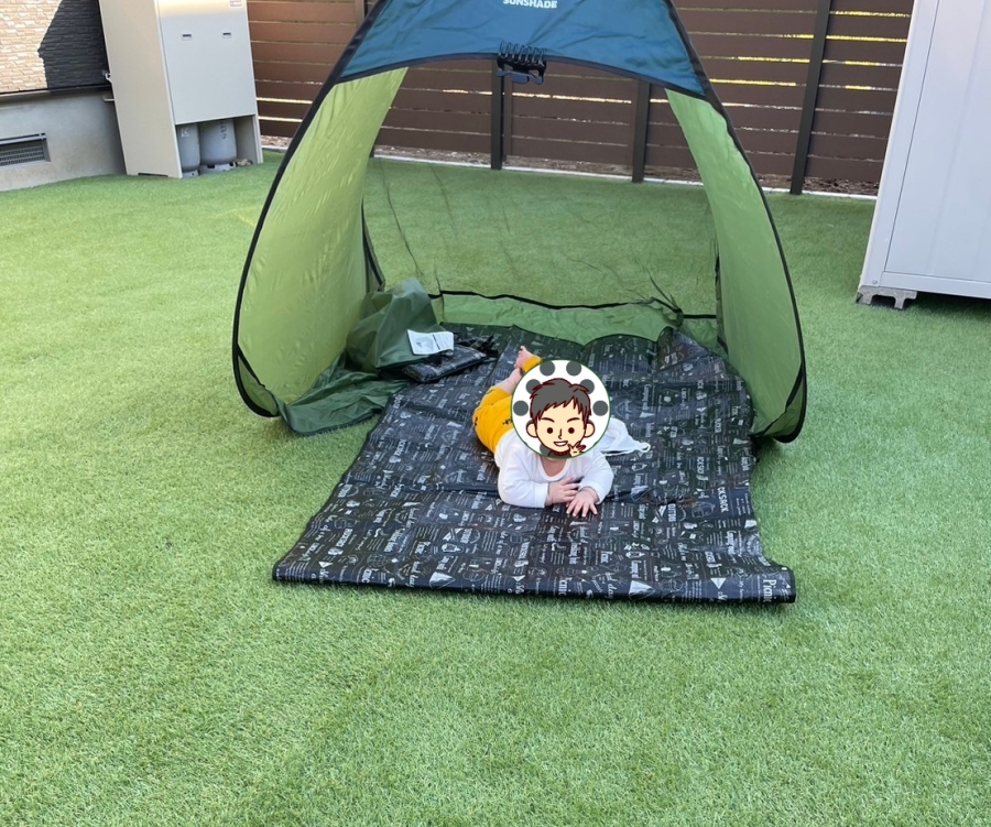 人工芝を敷いて一番うれしかったのは、子どもが安心して遊べる空間ができたことです。クッション性が高いので転んでもケガをしにくく、裸足でもチクチクしません。
