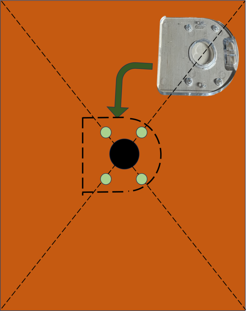 次に、天板にあけた穴とベースプレートの穴を合わせ、上記画像ののうにプレートを取り付けつけます。