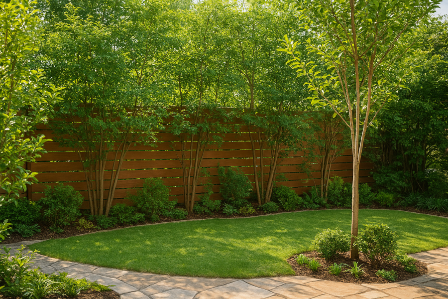 植物を使った目隠しは、ナチュラルで温かみのある雰囲気を演出できます。庭の境界や道路側に常緑樹(シマトネリコ・オリーブ・キンモクセイなど)を植えれば、自然と視線を遮る効果があります。